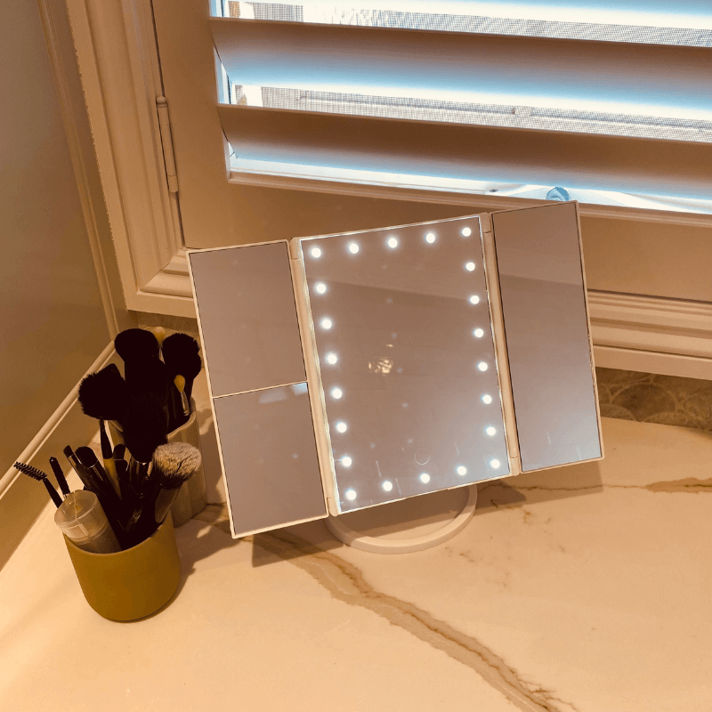 Lighting can make or break your makeup routine. Our trifold LED makeup mirror solves this problem by providing adjustable, natural lighting, ensuring precision and perfection every time. Compact and portable, it gives you the confidence to look your best anywhere.